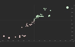 The best part is that our investment strategy automation software, CYBMIND, which comes with integrated Spotfire®, can create these scatter plots for you... automatically and in real-time! It simply collects all the information it needs, both from internal and external sources, and plots them to your specifications.
